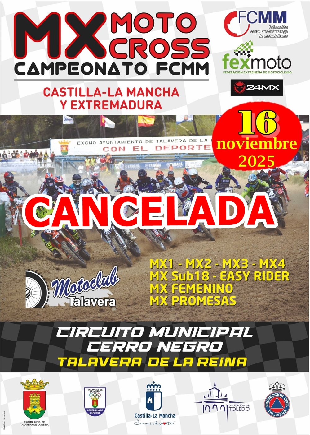 El Moto Club Talavera, informa que, debido a las condiciones meteorológicas adversas previstas para este fin de semana en Talavera de la Reina, la prueba programada para el próximo 16 de noviembre, no podrá celebrarse.