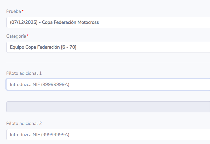 Uno de los pilotos deberá formalizar la inscripción, desde la zona privada de la web, indicando el el tipo de inscripción: «inscripción por equipo»